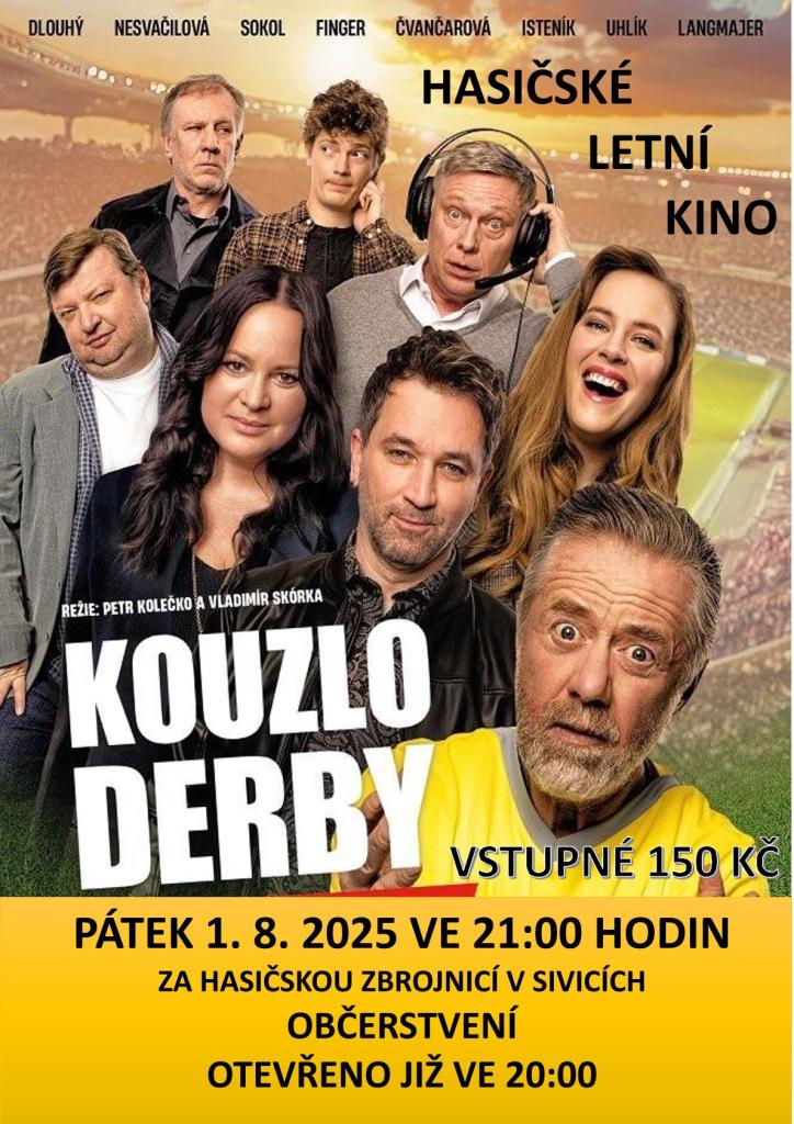 Hasiči Sivice vás zvou na letní kino v pátek 1. 8. 2025 na film Kouzlo derby. Promítat se začne ve 21:00 hodin za hasičskou zbrojnicí. Občerstvení otevřeno již od 20:00 hodin. Vstupné 150 Kč. Pro aktuální informace sledujte facebook stránku Hasiči Sivice.