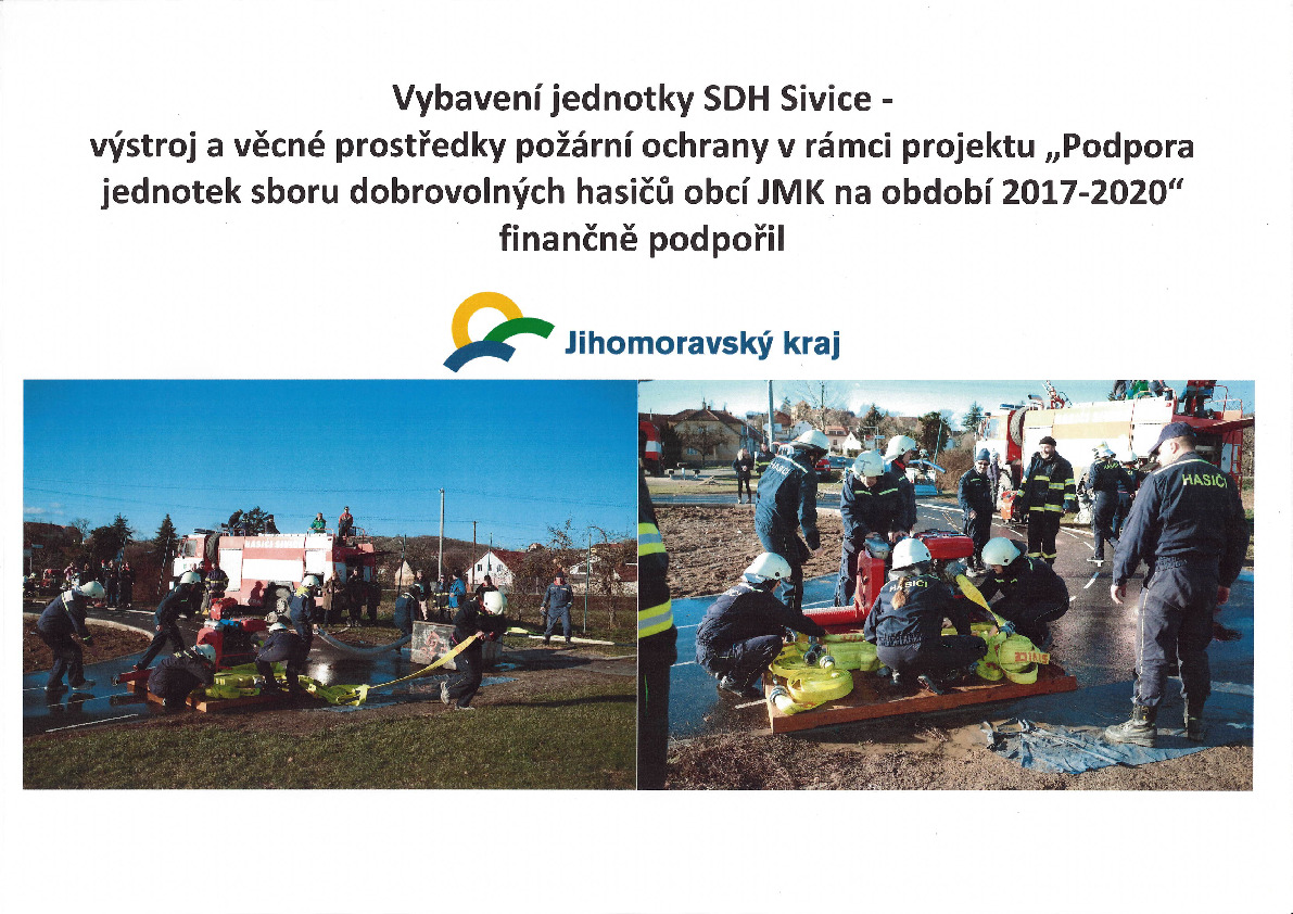 Publicita projektu Podpora jednotek sboru dobrovolných hasičů obcí JMK na období 2017-2020. Finančně podpořil Jihomoravský kraj.