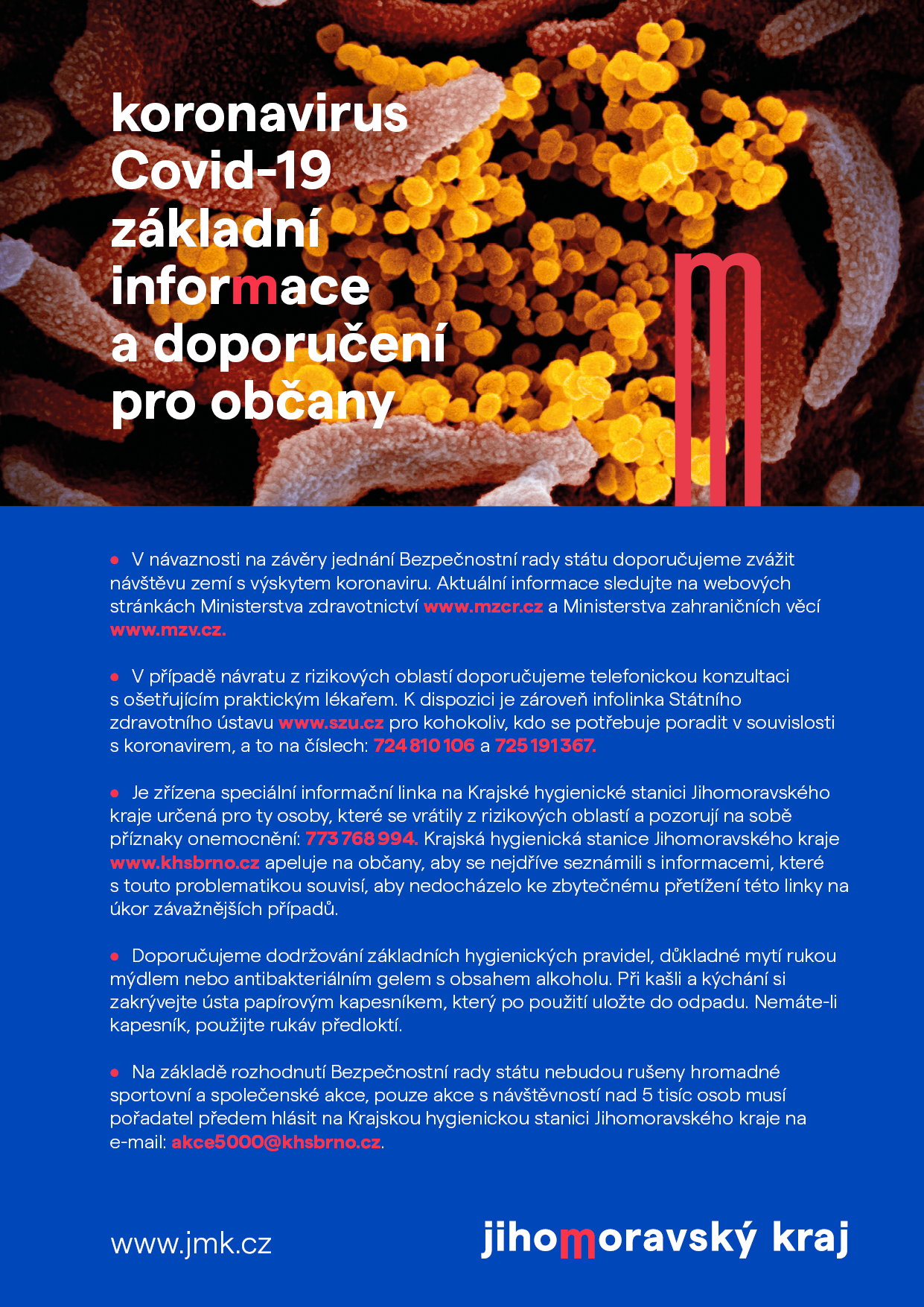 Na základě žádosti bezpečnostního ředitele Městského úřadu Šlapanice uveřejňujeme letáky týkající se Coronaviru: