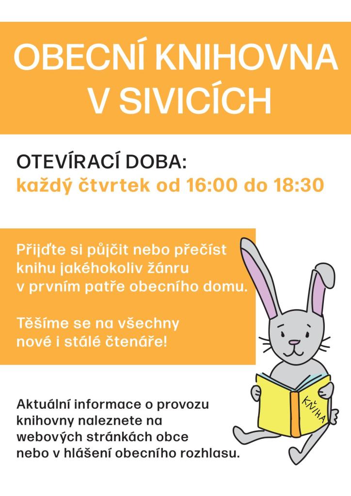 Knihovna v Sivicích oznamuje změnu otevírací doby.