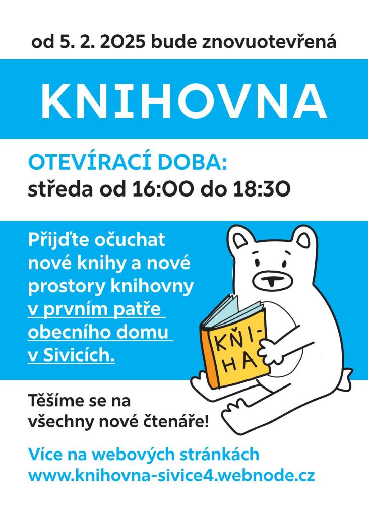 středa 5. 2. 2025 od 16:00 do 18:30 Obecní dům v Sivicích, Sivice 292, první patro