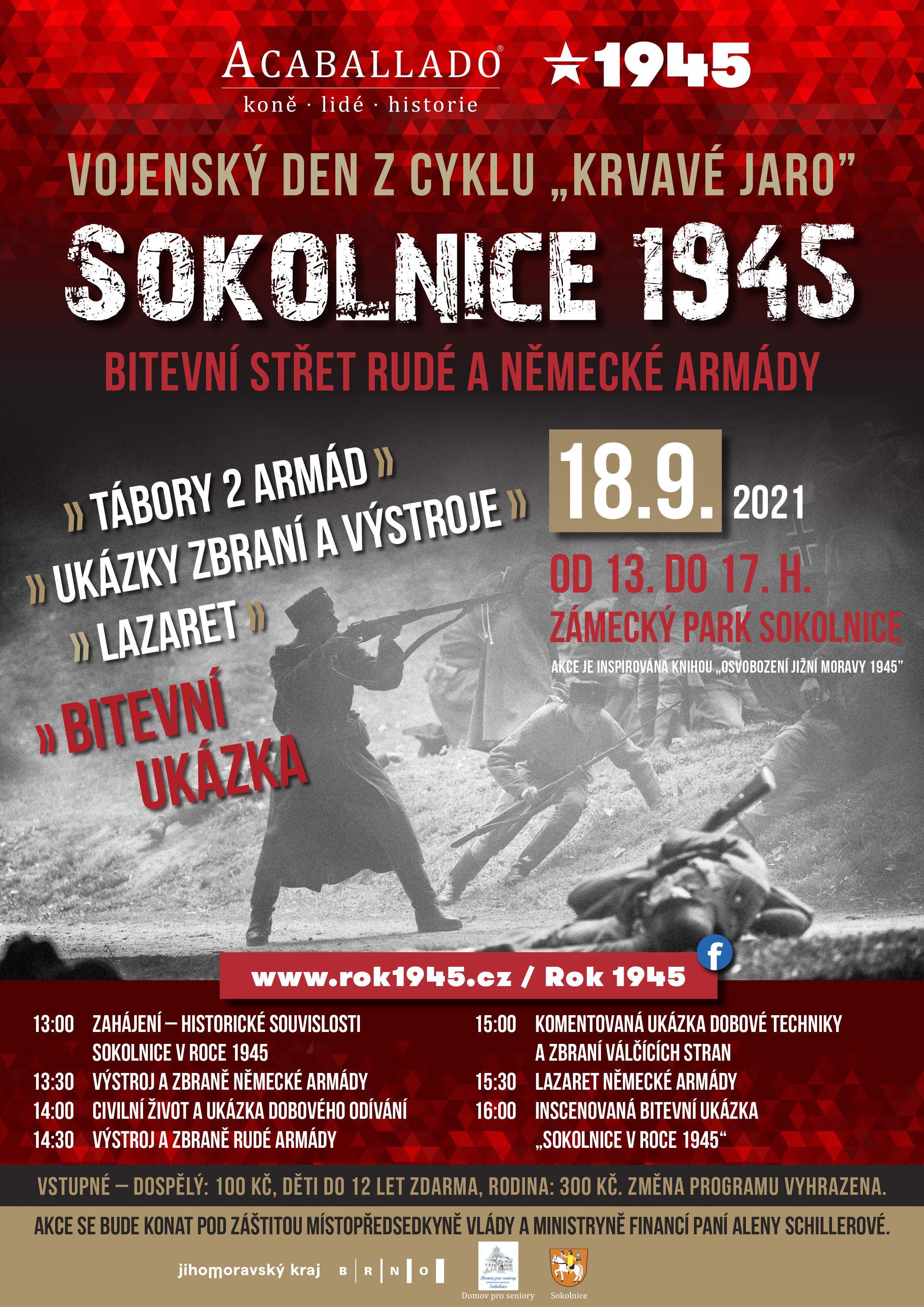 V sobotu 18. září 2021 v zámeckém parku Domova pro seniory Sokolnice uvidíte jednotky Rudé a Německé armády, jejich zbraně, výstroj a výzbroj. Vše vyvrcholí inscenovanou bitevní ukázkou v 16 hod.
